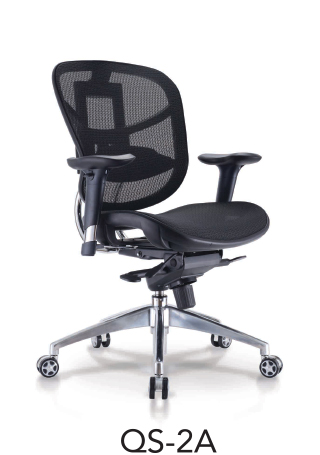 QS-2AQ-SERIES Executive Medium Back Mesh Chair With Adjustable Polypropylene Armrest c/w Upholstery Armpad,5 Position Locking Mechanism With Seat 'Slider Controller' And Chrome Aluminum Die-Cast High Base.
